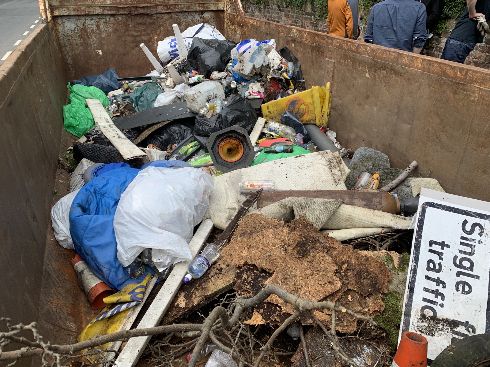 These thoughts rattled through my head anyway as we pulled balloon gas canisters (maybe from some kid’s party), old carpets and blinds (a house refurb?), car parts with dumped oil, two stolen scooters (now reunited with their ecstatic young owners) and by far and away the most prevalent crap: sandwich tubs, drink bottle and coffee cup after drink bottle and coffee cup some carefully bagged to be removed from their owners vehicles and chucked lazily over the wall while parked in the lay-by.